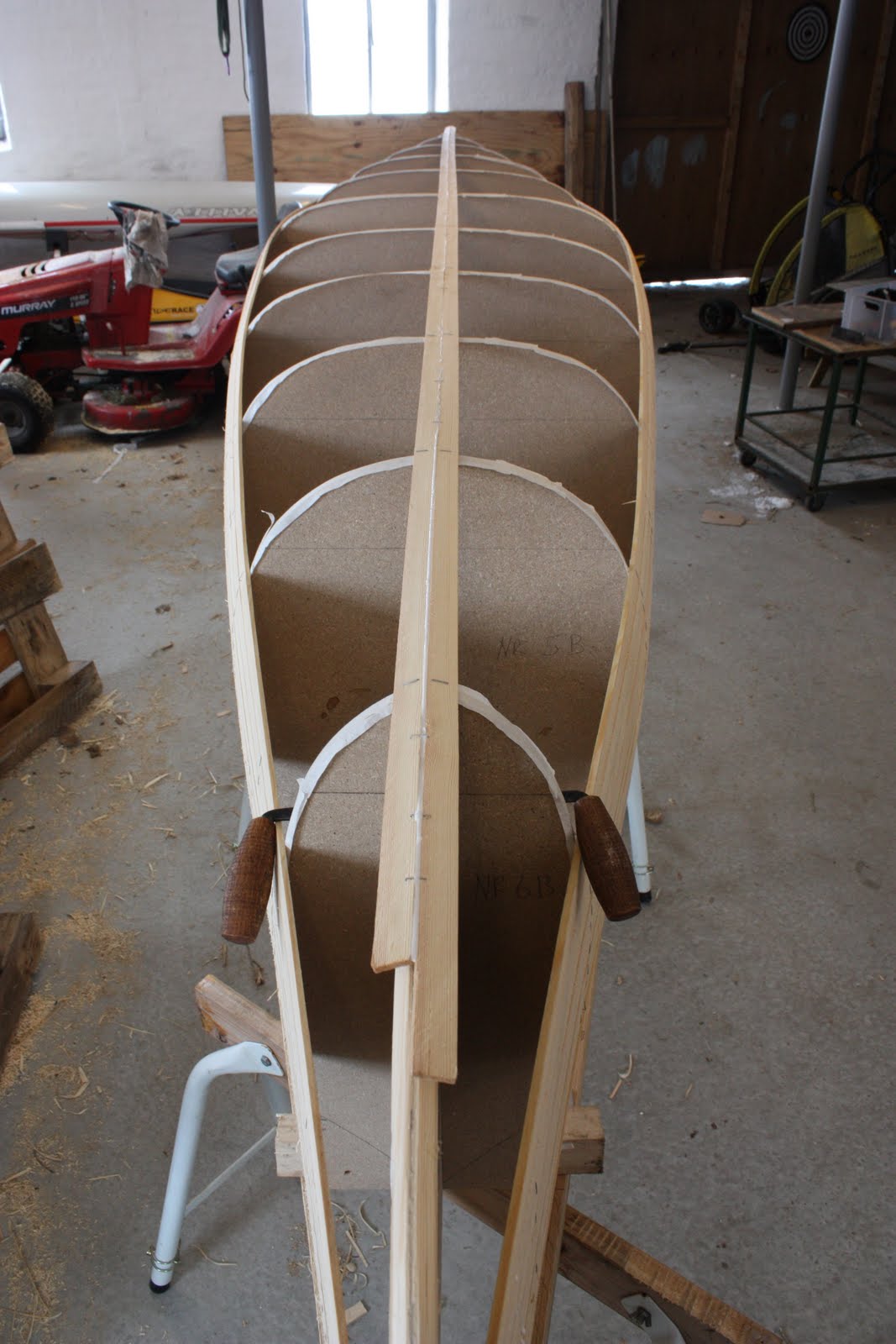 Problemet jeg var rendt ind i var listerne på siden af kanoen. Med det spænd som der kommer på, når de skal følge bundprofilen, så buger de meget. Jeg tror løsningen bliver at fortsætte fra kølen og nedad, så må jeg skære til efterhånden...